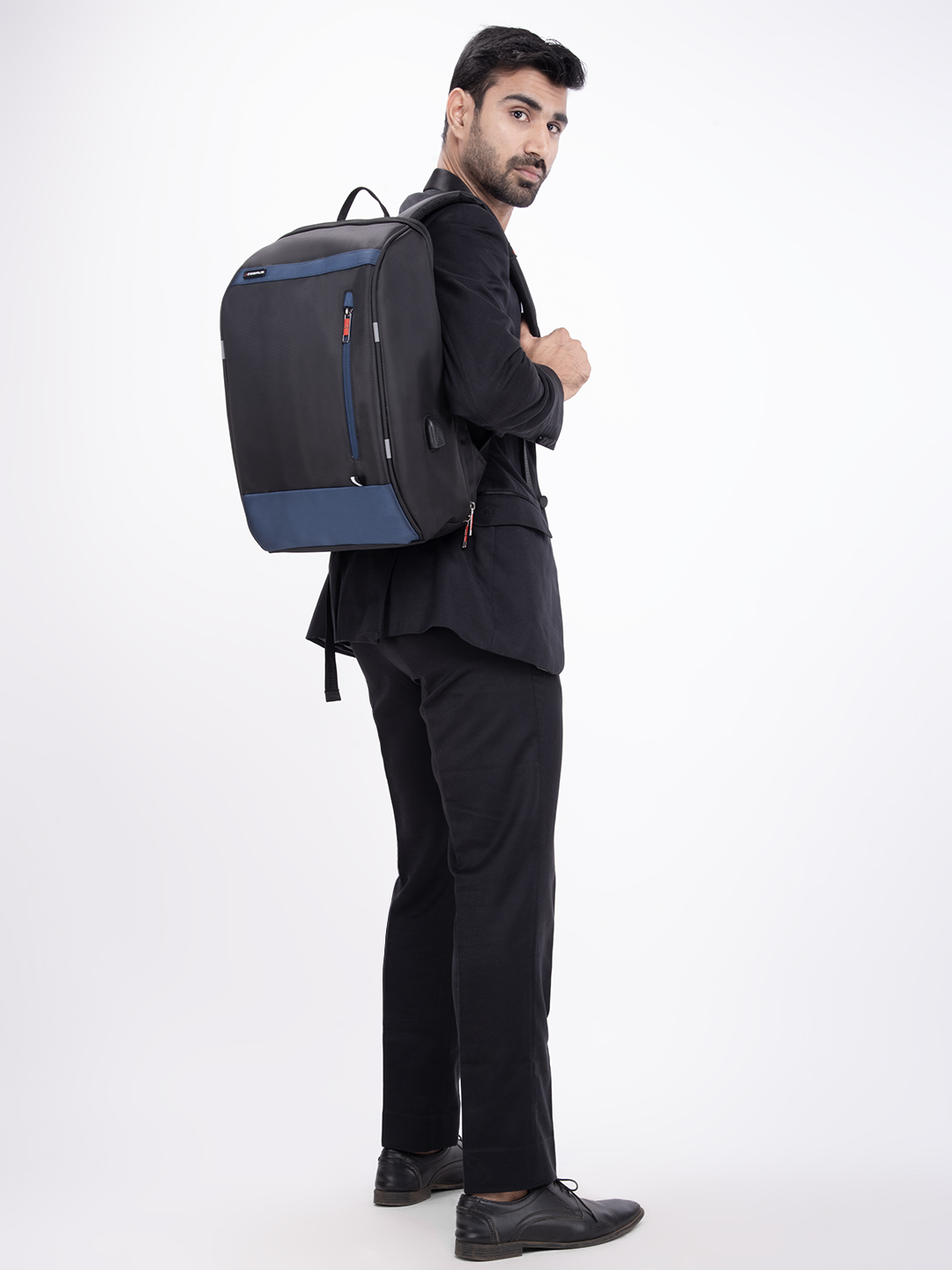 Secure & Spacious Storage – Dedicated padded laptop compartment for up to 16” laptops, an external USB charging port, and multiple pockets to keep essentials within reach.