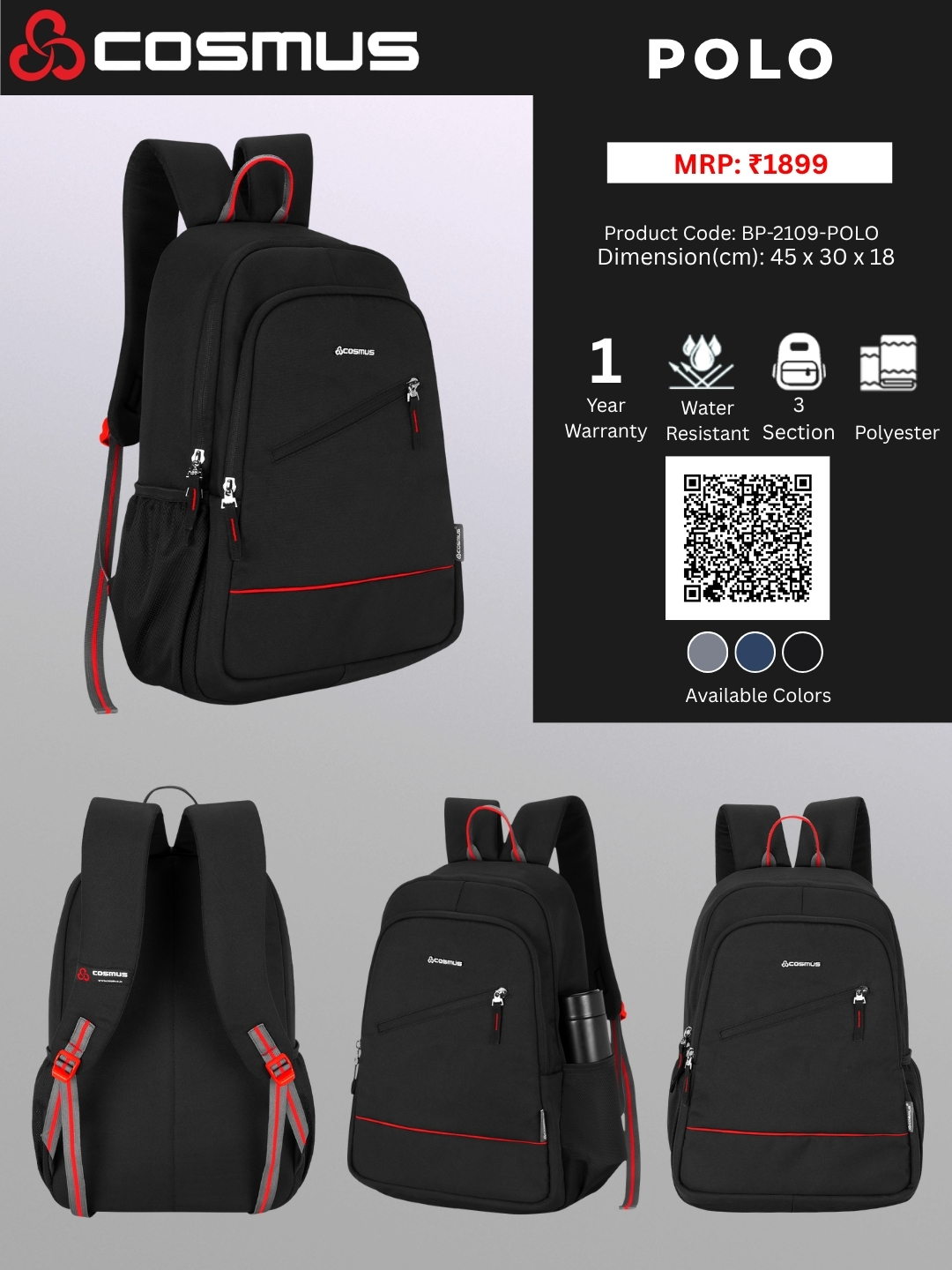 Available in navy blue, grey, and black, the Cosmus Polo backpack combines functionality with style, allowing you to choose a color that best suits your personal taste.