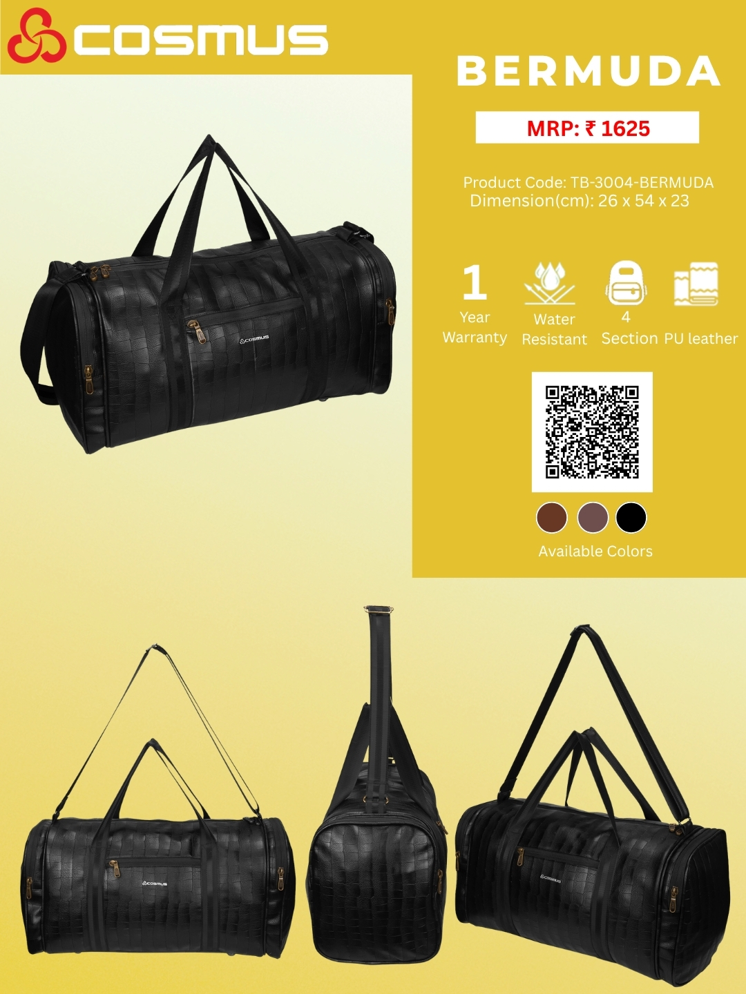 Cosmus Bermuda Travel Duffle bag is effectively equipped with highly efficient zippers and strap locks made up of high quality alloy which provides a long term durability.