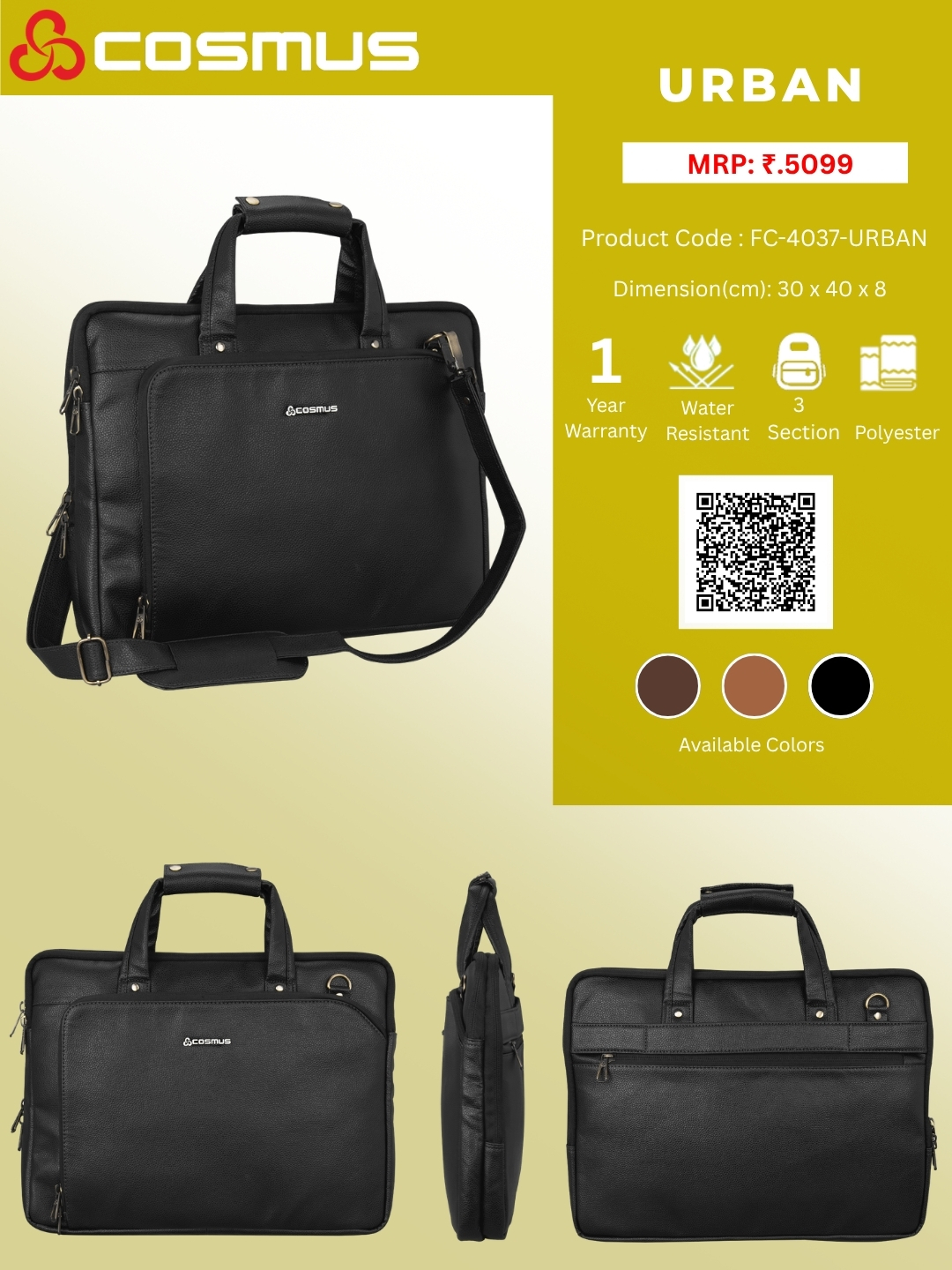 This Cosmus Laptop bags uses premium quality zippers that give adjustable open angles. Other metallic fitting gives enhance look.