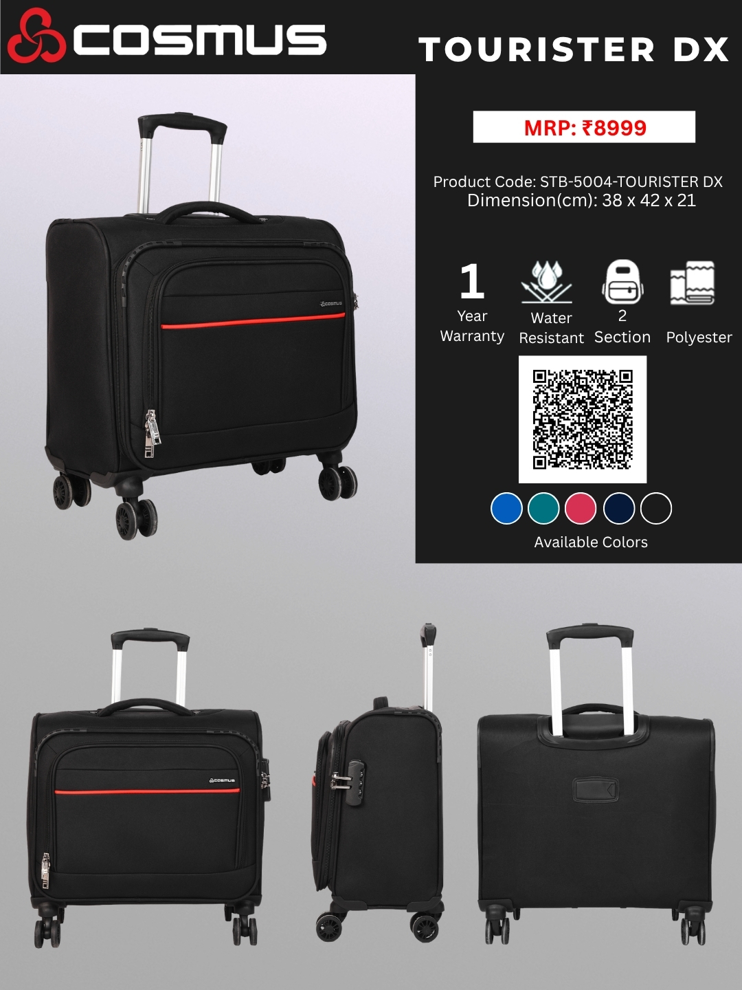 The stylish & spacious COSMUS Polyester Overnighter Laptop Trolley Bag comes with an Adjustable Trolley Handle & Laptop compartment functionality, making it super compatible as cabin luggage and perfect for business trips.