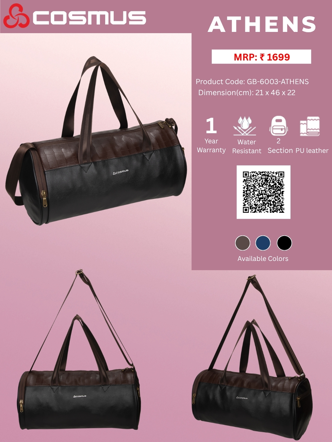 Stylish Artificial Vegan PU leather Gym bag - suits all age group.