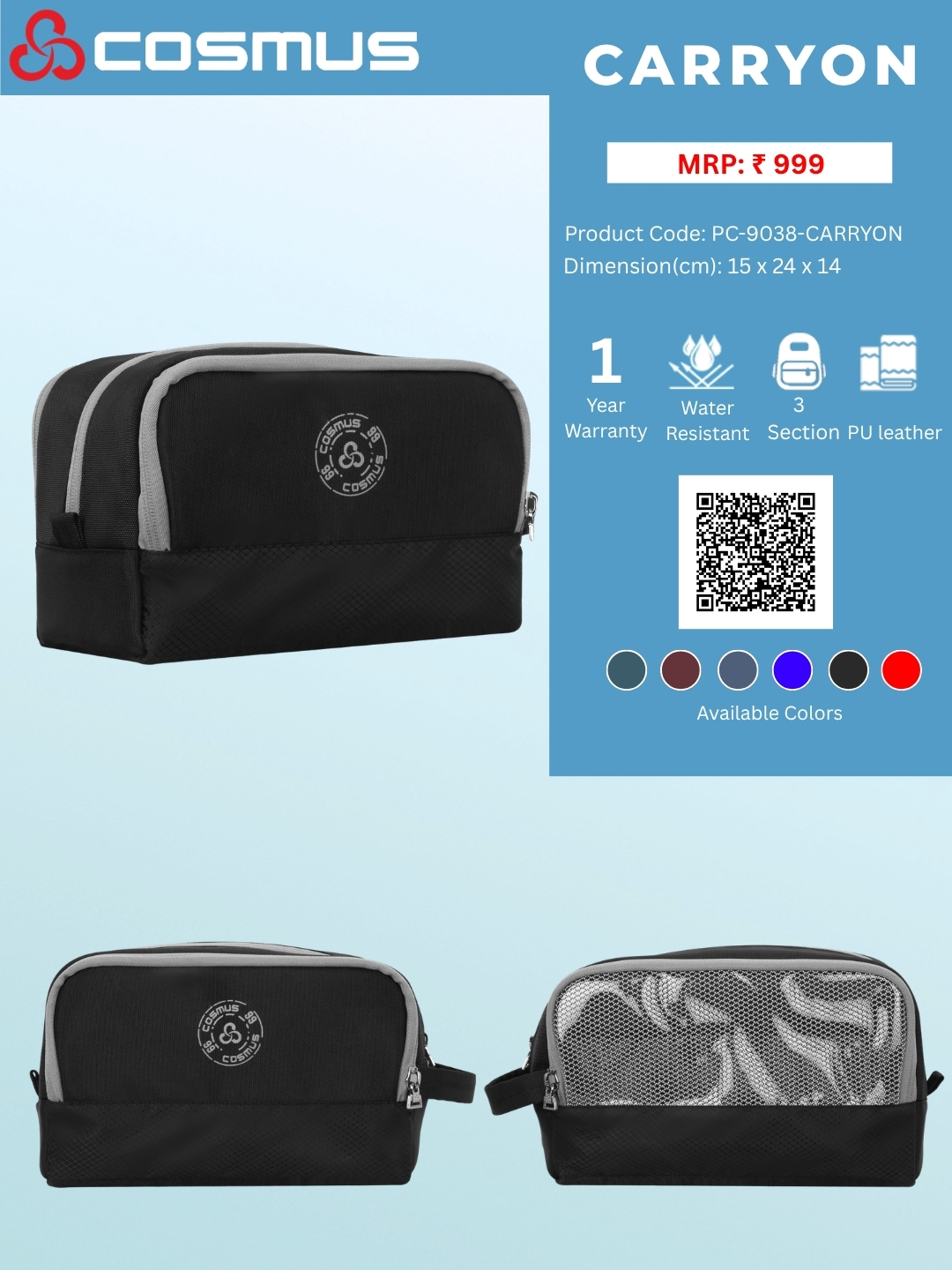 The Cosmus – Carryon is designed to keep you in mind a, trendy stylish Unisex College Toiletry bag.