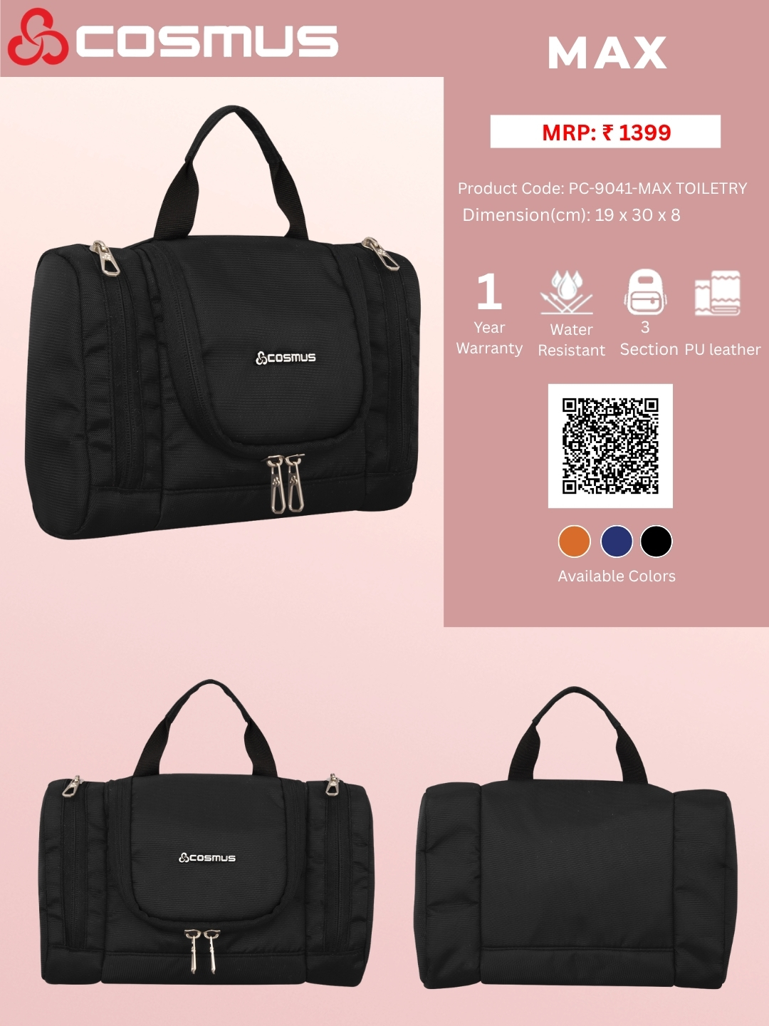 COSMUS Bags MAX Toiletry Bag –- Multiple pockets water resistance Lenin bag.