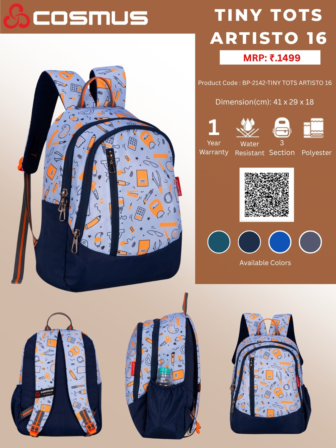 The COSMUS 20L Kids Bag is a vibrant and playful school backpack designed for young children between the ages of 2 and 5 years old. An ideal daypack for small students, providing a playful and functional solution for carrying their belongings to school, daycare or outings.