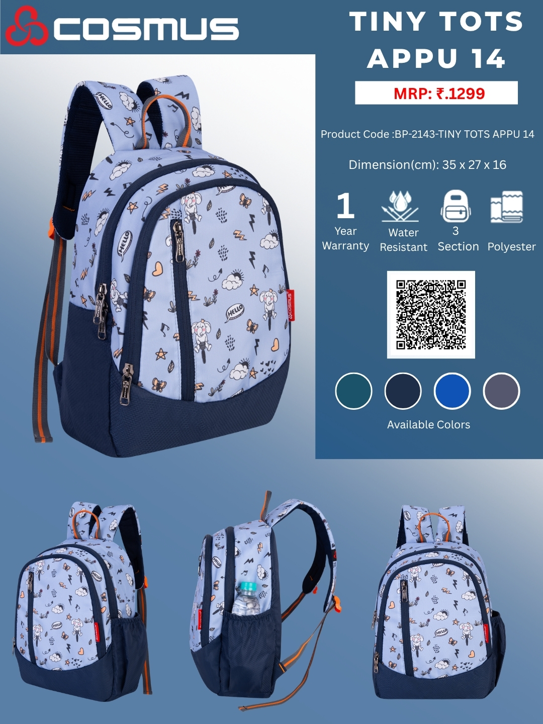 Model: BP-2143-TINY TOTS APPU 14-NAVY   SKU: 40051022143