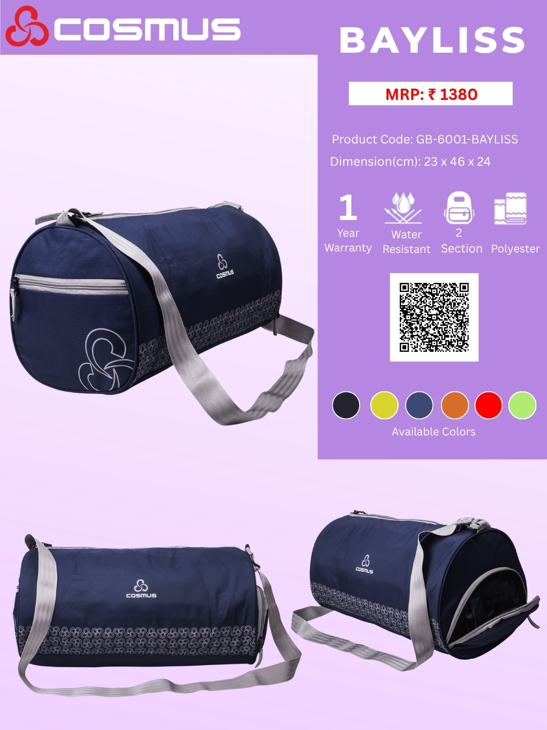 The Cosmus Bayliss Sports Bag combines style and functionality effortlessly. With its sleek design and choice of colors, it adds a touch of sophistication to your athletic ensemble. The bag is not only suitable for the gym but also doubles as a travel bag or weekend getaway companion, ensuring you're always prepared for your next adventure.