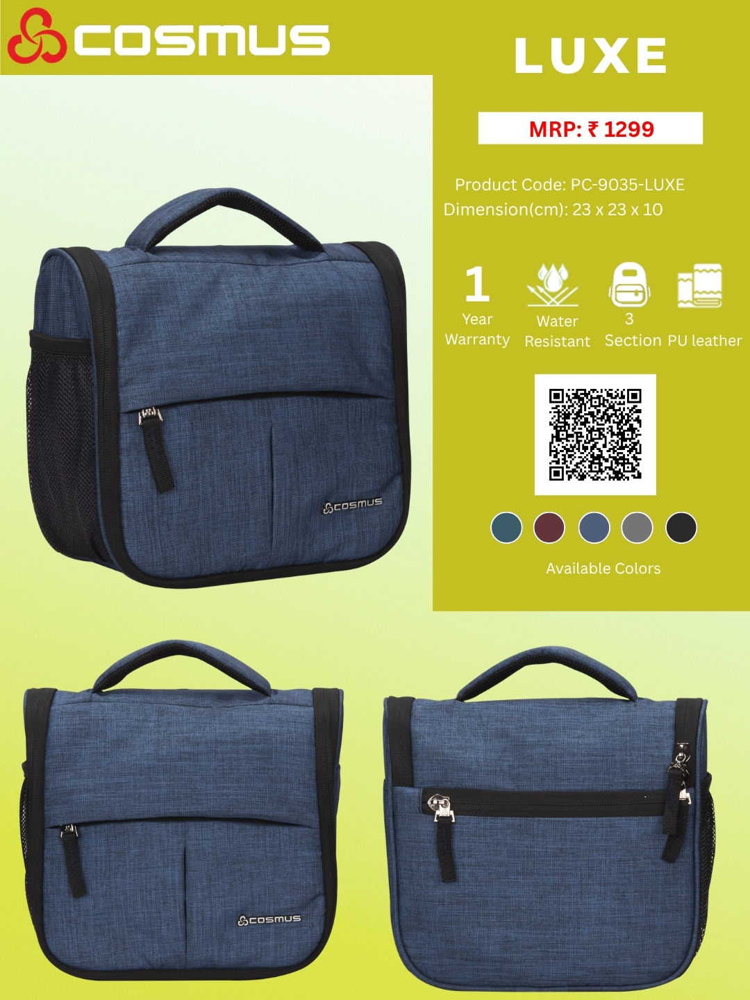 The Cosmus – Luxe creates everything while understanding your needs, it is equipped with 2 zippers and extremely Spacious storage units for your multipurpose use and a back zipper with a side stretchable mesh pouch.