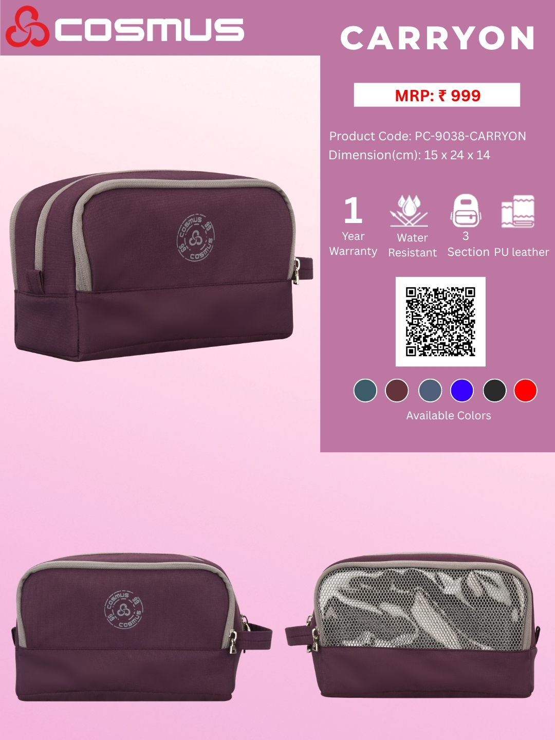 The Cosmus – Carryon is designed to keep you in mind a, trendy stylish Unisex College Toiletry bag.