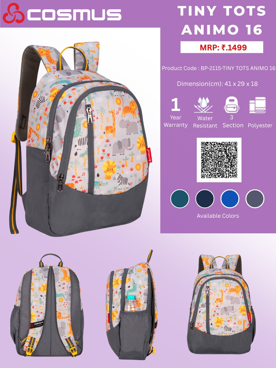 Model: BP-2115-TINY TOTS ANIMO 16-GREY   SKU: 40051042115