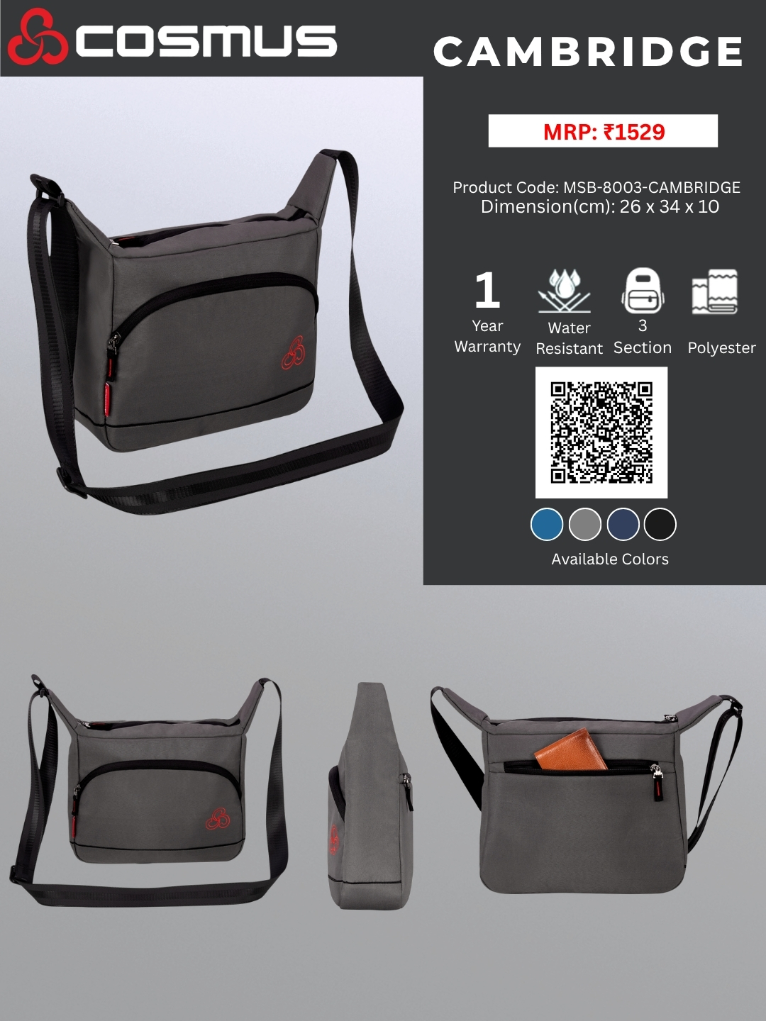 The Cosmus messenger bags use premium quality material and special engineered Straps, that are adjustable in nature for optimum comfort