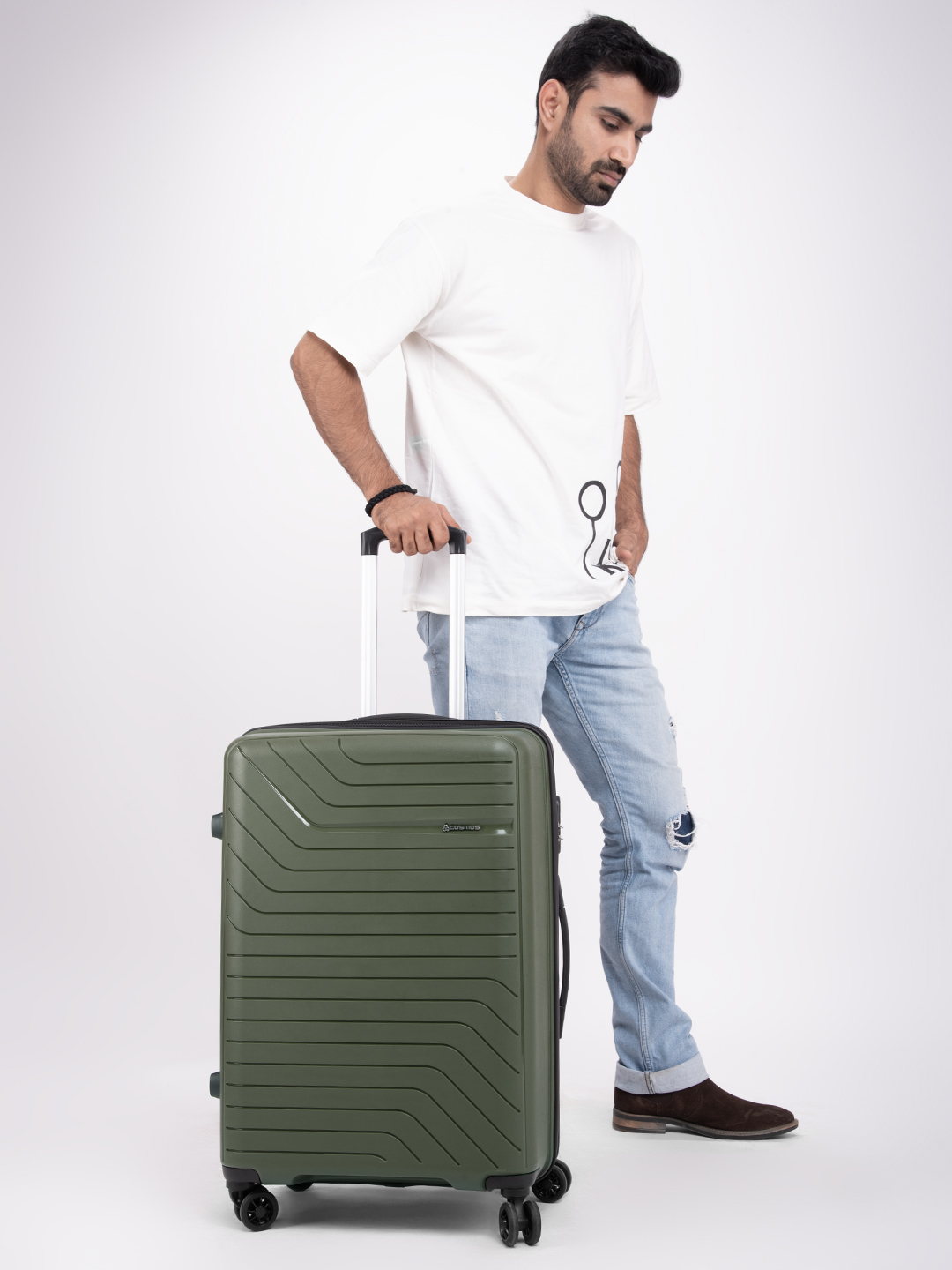 Strong & Stylish Shell – Scratch-resistant polypropylene body with diagonal pattern design and comfy inner lining.