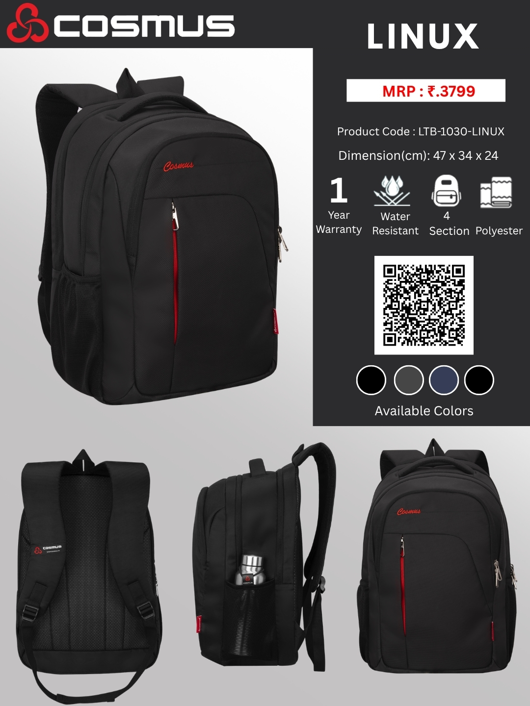 Made with premium polyester, Cosmus Linux offers durability with a sleek, modern design perfect for work, travel, or daily use.