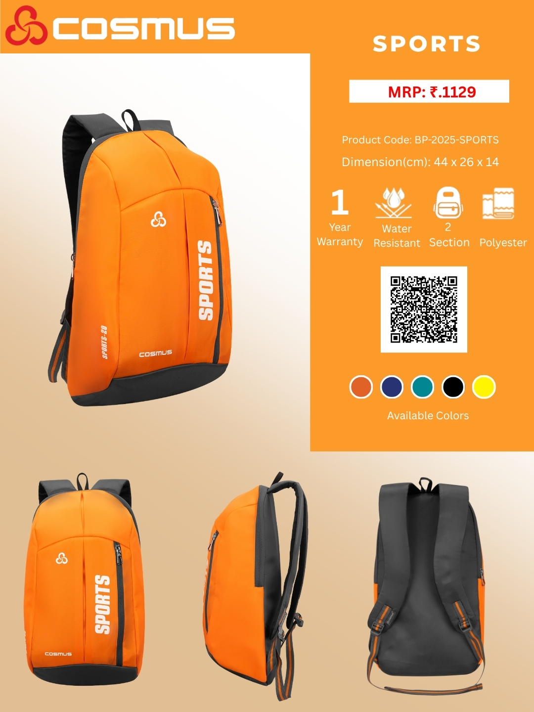 Cosmus bags understands your needs, that’s why we have 1 Large Compartments + 1 Easy access front pocket