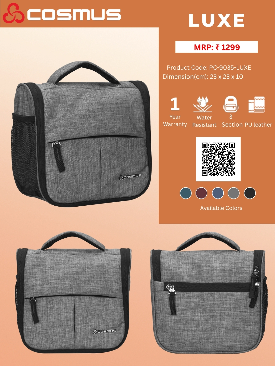 The Cosmus – Luxe creates everything while understanding your needs, it is equipped with 2 zippers and extremely Spacious storage units for your multipurpose use and a back zipper with a side stretchable mesh pouch.