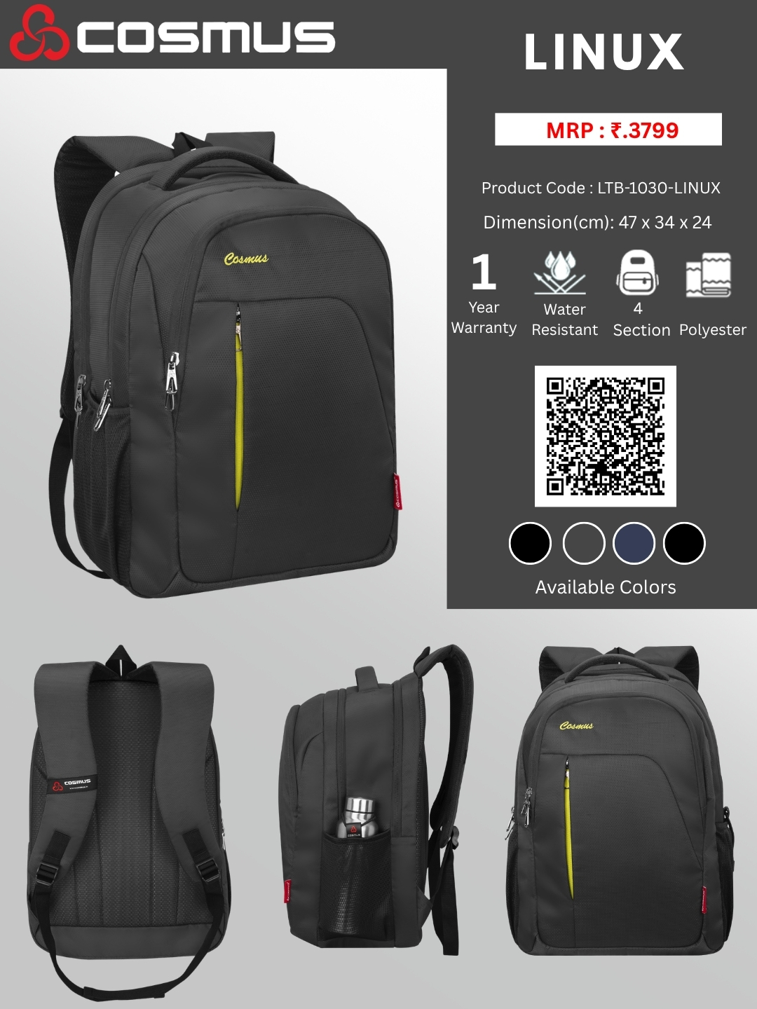 Made with premium polyester, Cosmus Linux offers durability with a sleek, modern design perfect for work, travel, or daily use.
