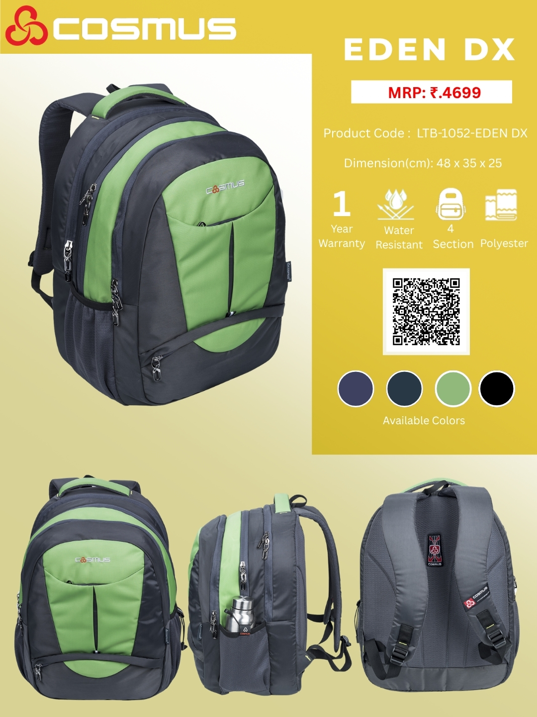 Cosmus Eden Dx laptop backpack is perfect laptop bag for you, its cushioned laptop pocket keep your laptop securely tight and protected while you are on the move. This laptop bag pack suits your style & is very comfortable to carry, its ergonomics and makes you forget the load you are carrying, well-padded shoulder straps ease the carrying