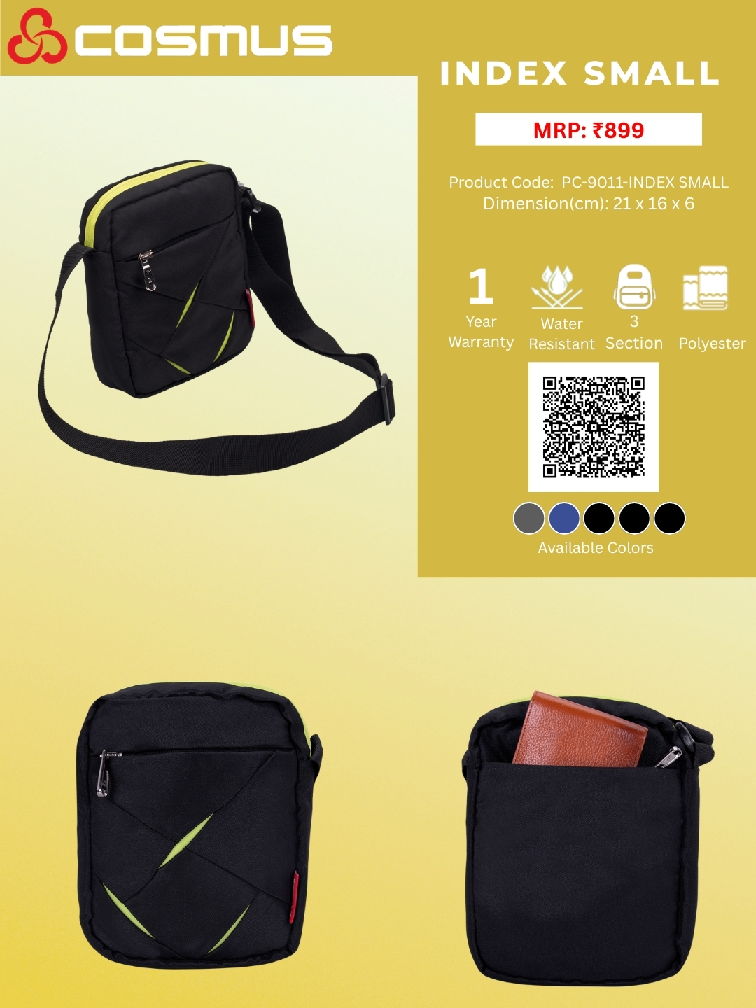 Cosmus bags are Made of Premium Hi-grade Water resistance PU coated Polyester Fabric. Keep yur valuable Documents Securely and confidently