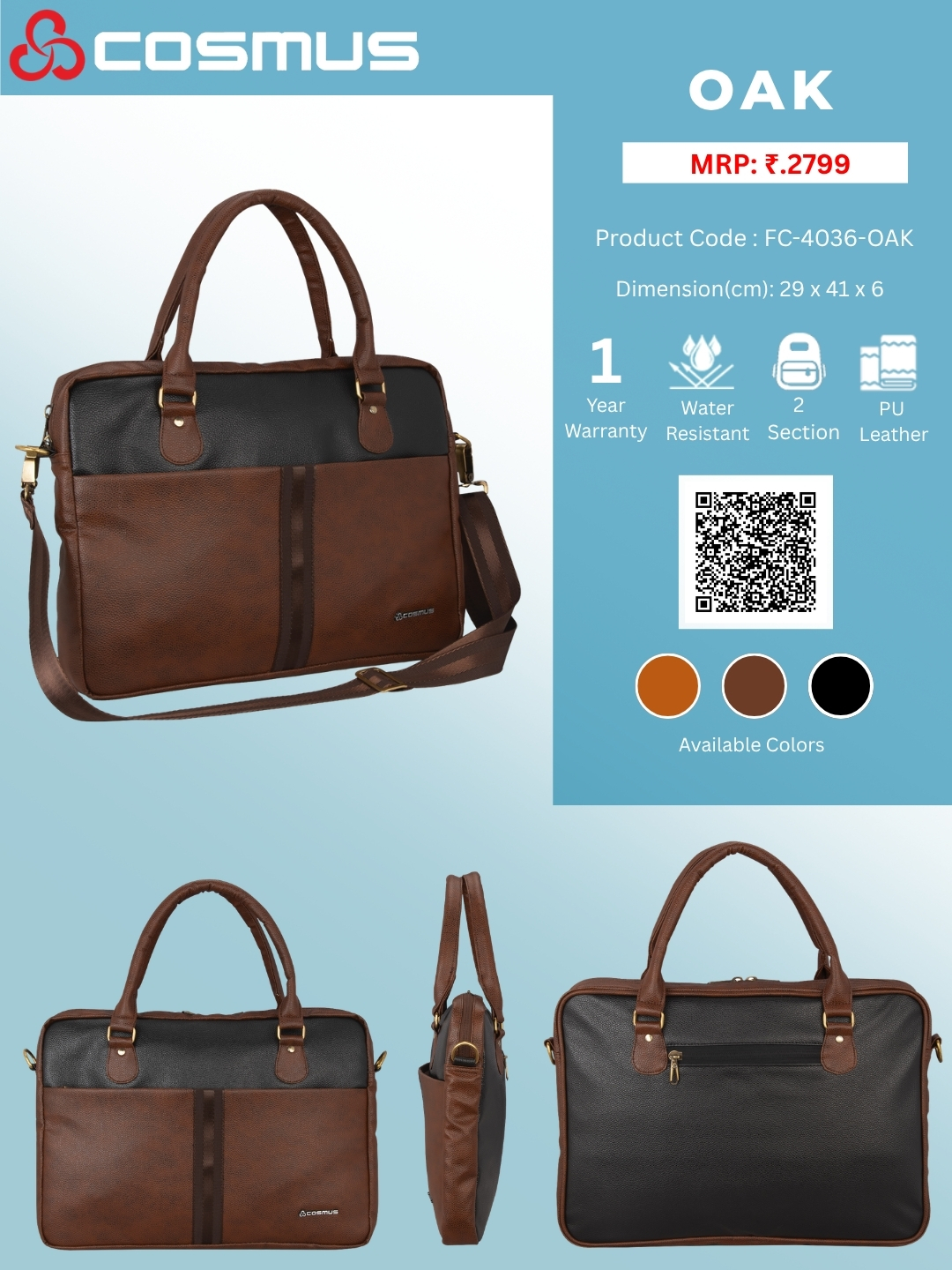 This Cosmus Laptop bags uses premium quality zippers that give adjustable open angles. Other metallic fitting gives enhance look. The zippers & fitting are purely crafted in India.