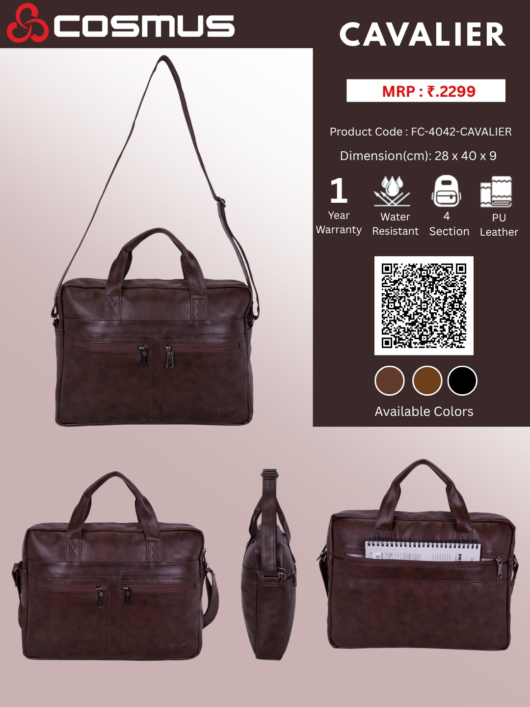 Stylish Design: The Cavalier office messenger bag boasts a sleek design crafted from durable PU leather, adding a touch of sophistication to your professional ensemble.
