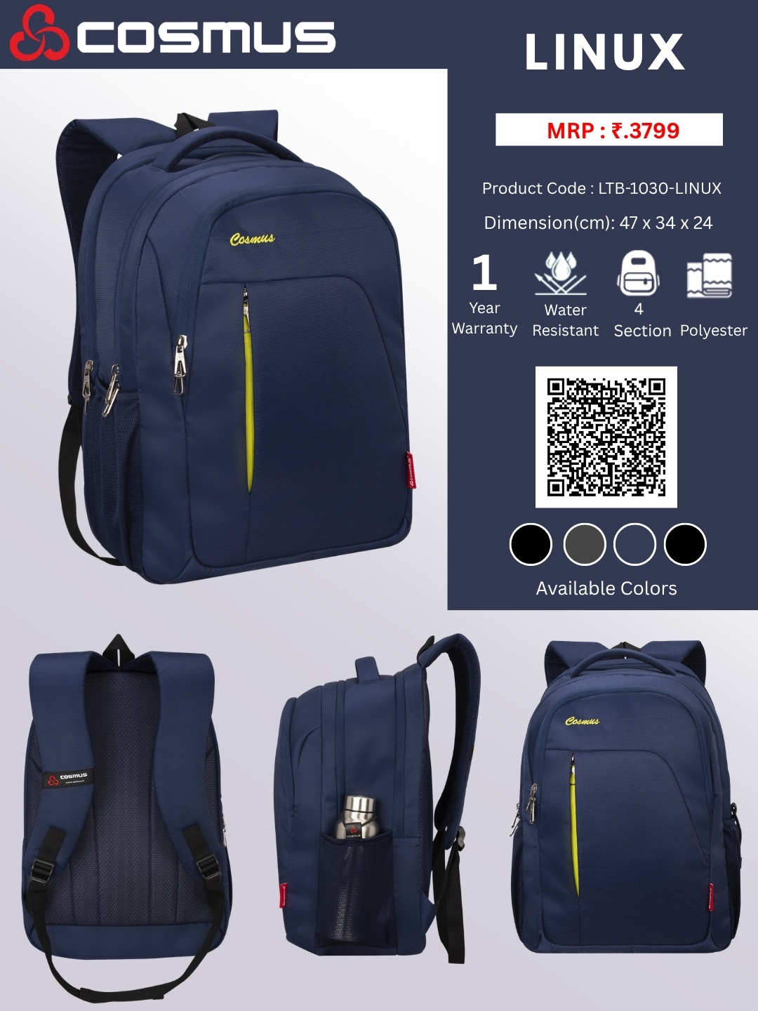 Made with premium polyester, Cosmus Linux offers durability with a sleek, modern design perfect for work, travel, or daily use.