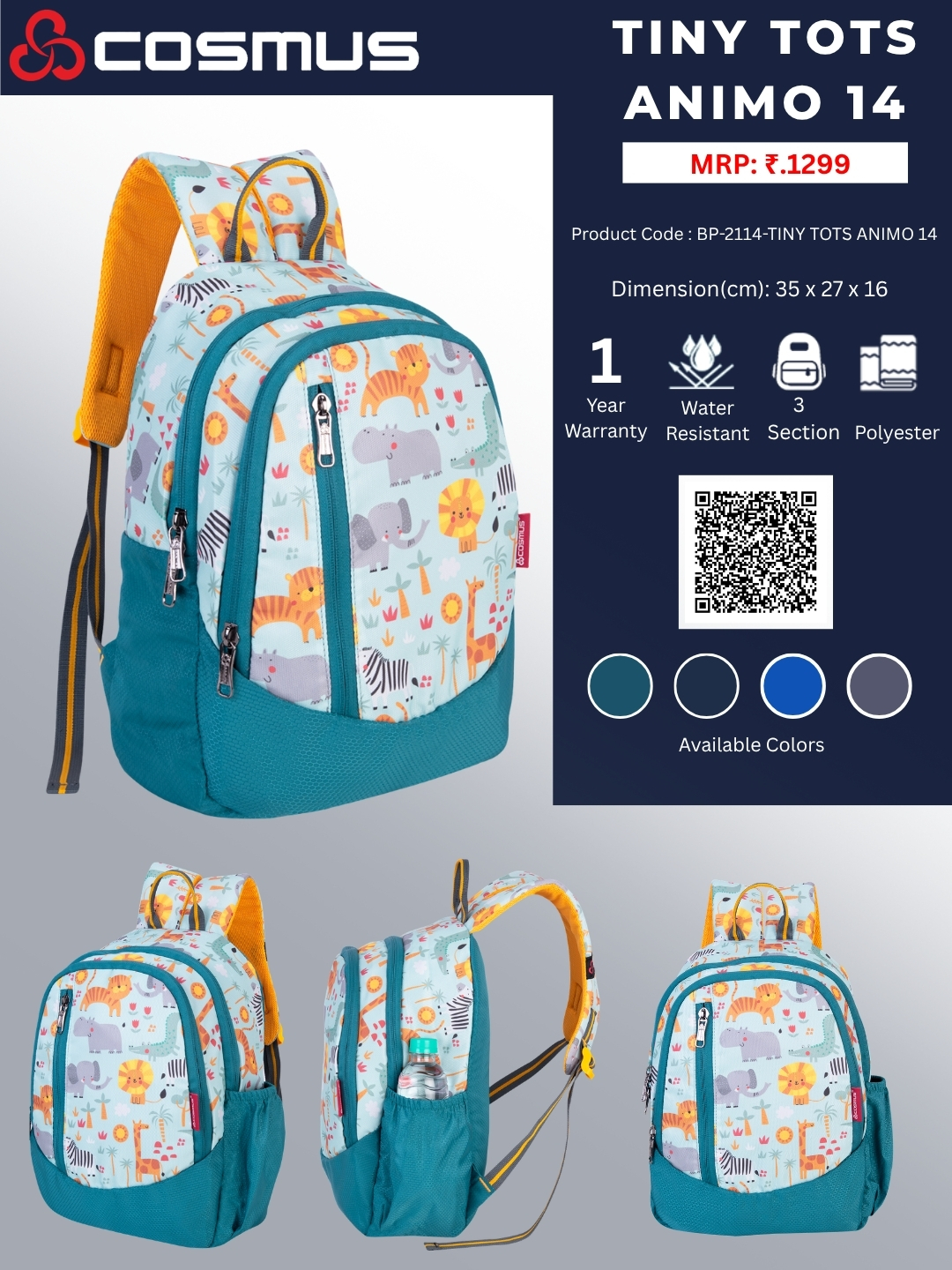 Dimension: 35 (H) x 26.87 (W) x 16.25 (D) cm :: Capacity: 15 Litre :: Lightweight and Perfect Size for Kids