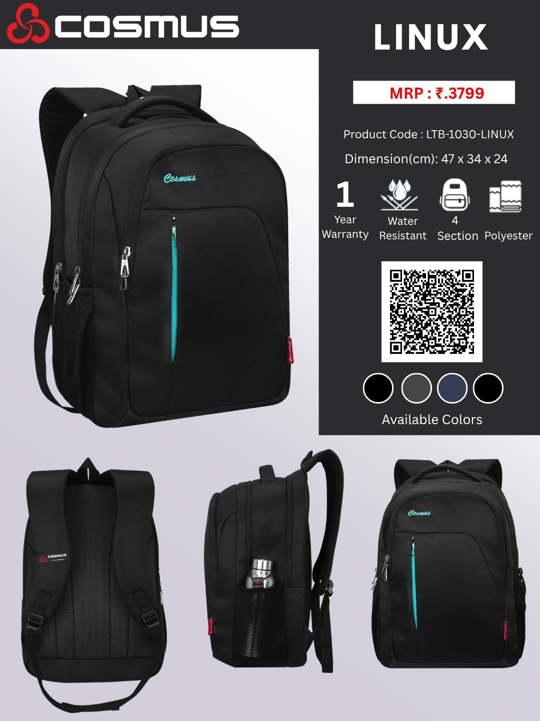 Made with premium polyester, Cosmus Linux offers durability with a sleek, modern design perfect for work, travel, or daily use.