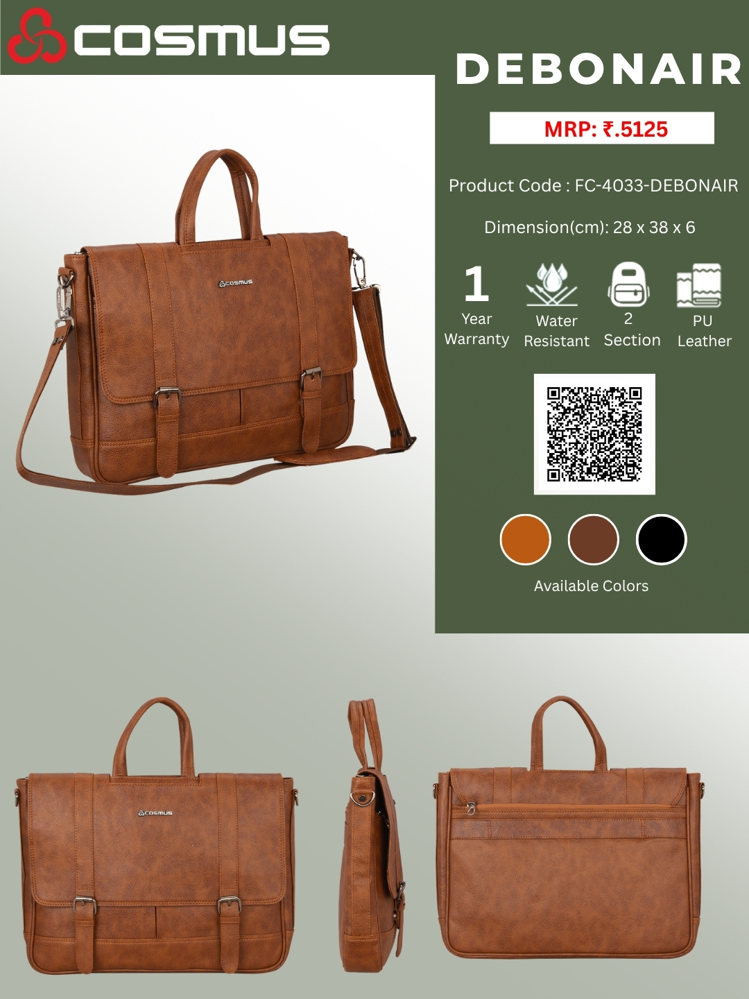 The Cosmus Laptop bag is crafted with Durable Water-resistant Artificial PU Leather Fabric, It helps your gadgets while protecting them from moisture.
