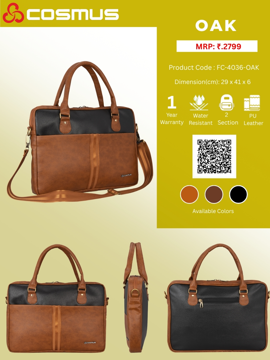 This Cosmus Laptop bags uses premium quality zippers that give adjustable open angles. Other metallic fitting gives enhance look. The zippers & fitting are purely crafted in India.