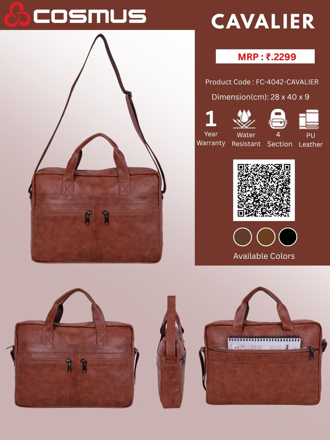 Stylish Design: The Cavalier office messenger bag boasts a sleek design crafted from durable PU leather, adding a touch of sophistication to your professional ensemble.