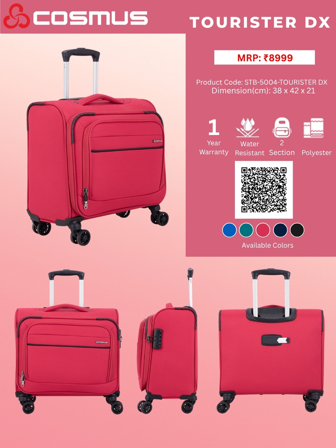 The stylish & spacious COSMUS Polyester Overnighter Laptop Trolley Bag comes with an Adjustable Trolley Handle & Laptop compartment functionality, making it super compatible as cabin luggage and perfect for business trips.