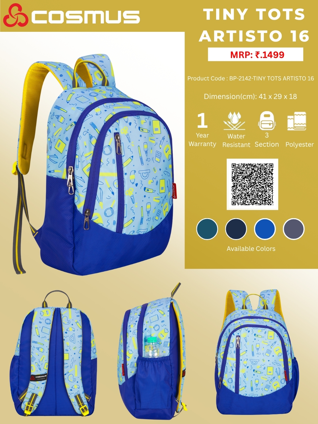 The COSMUS 20L Kids Bag is a vibrant and playful school backpack designed for young children between the ages of 2 and 5 years old. An ideal daypack for small students, providing a playful and functional solution for carrying their belongings to school, daycare or outings.