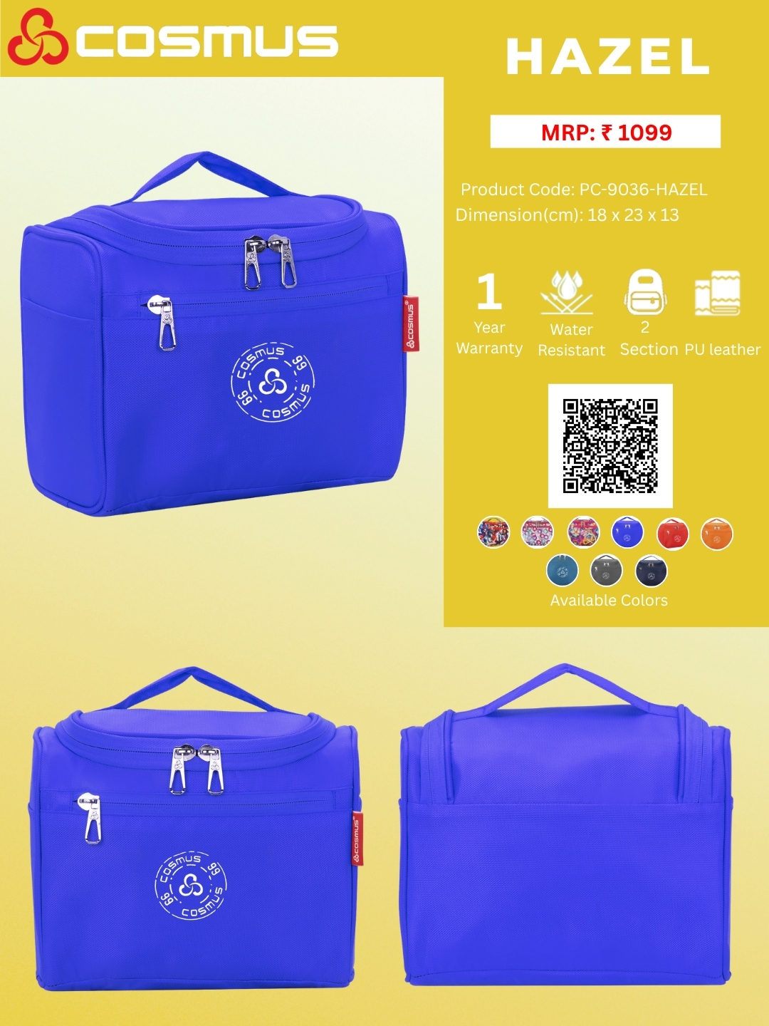 The Cosmus – Hazel creates everything while understanding your needs, it is equipped with 2 zippers and extremely Spacious storage units for your multipurpose use and a back zipper with a side stretchable mesh pouch.