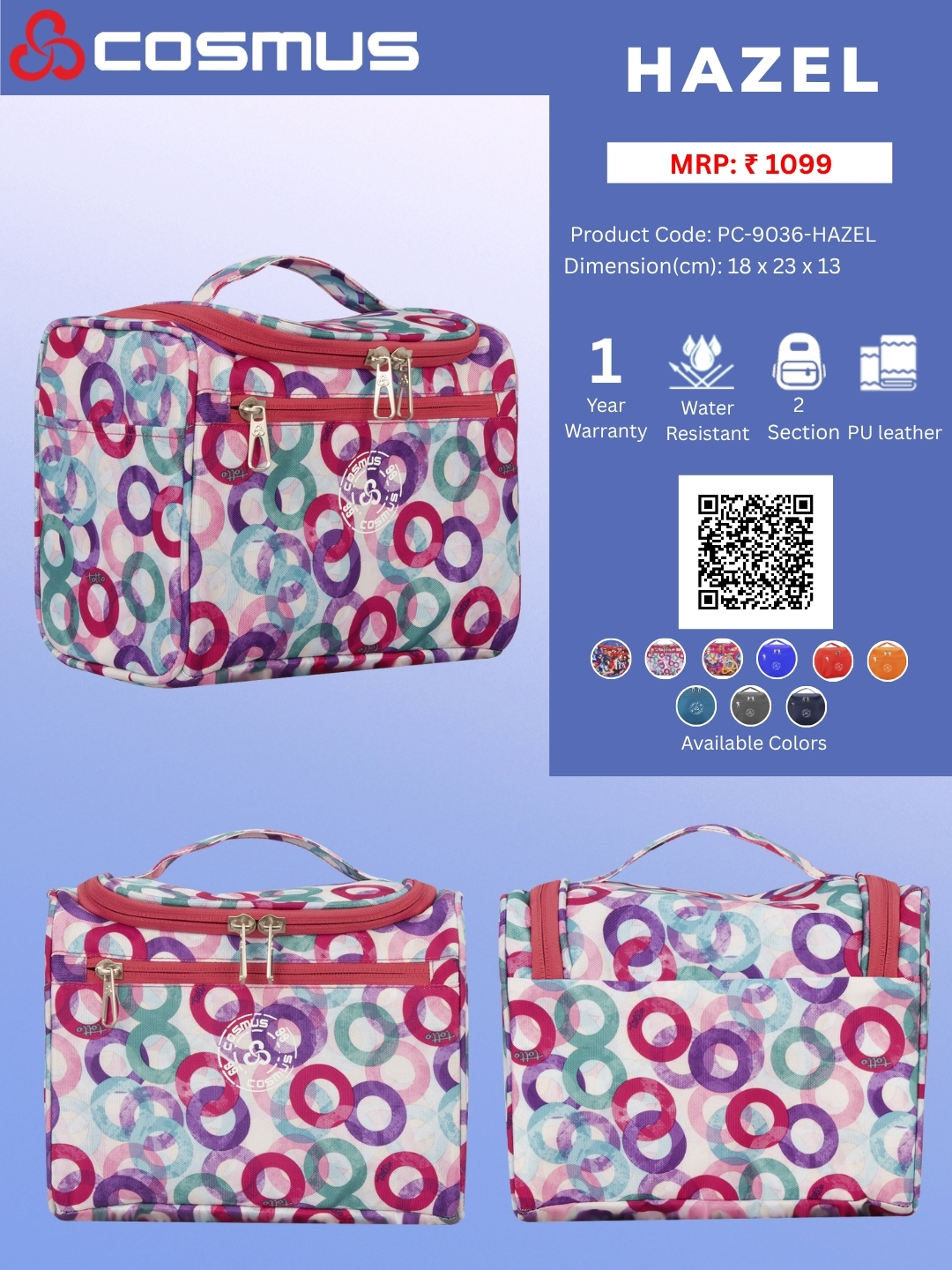 The Cosmus – Hazel creates everything while understanding your needs, it is equipped with 2 zippers and extremely Spacious storage units for your multipurpose use and a back zipper with a side stretchable mesh pouch.