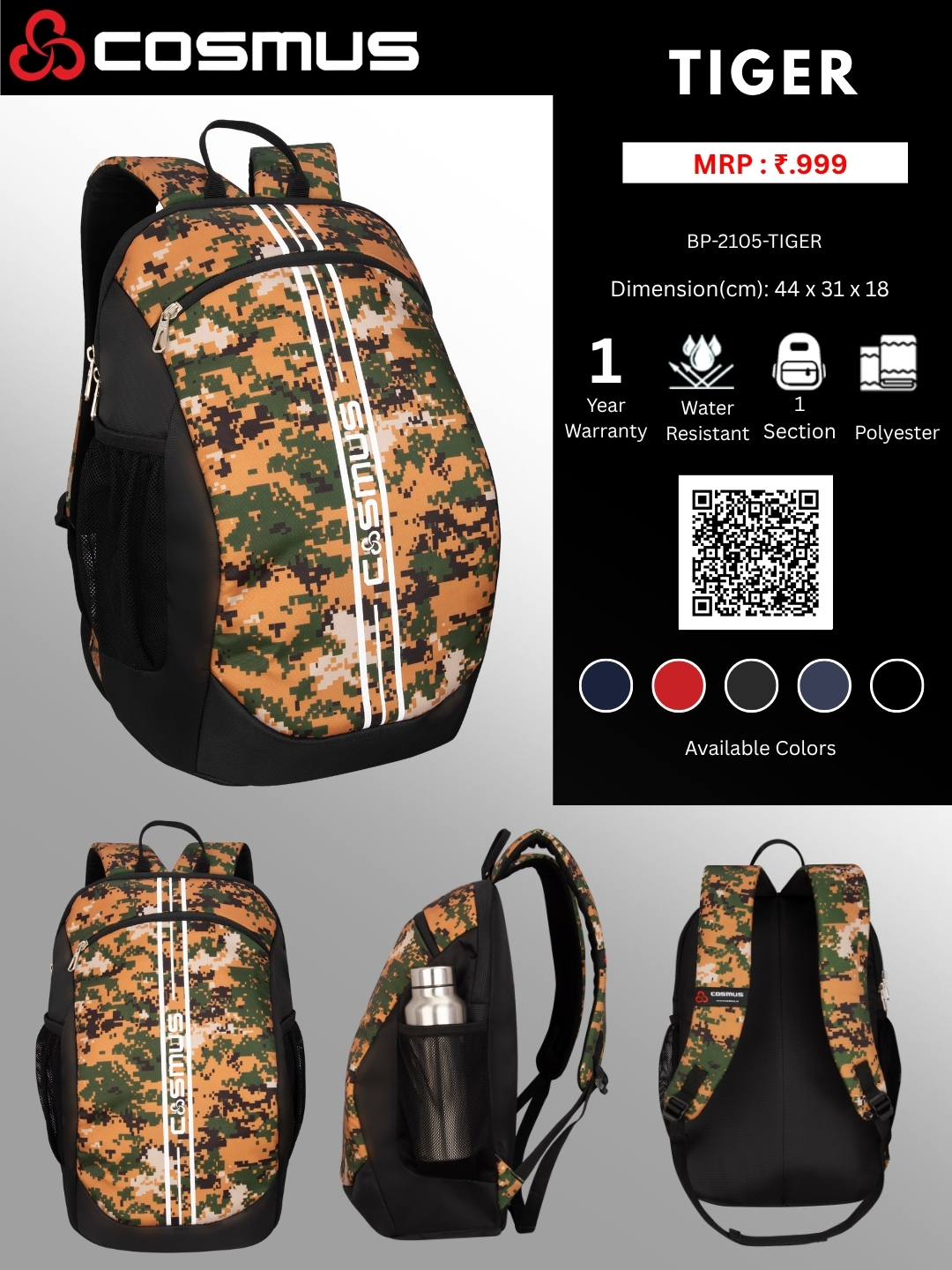 Cosmus Bags deeply looks into all your needs , outer mesh pockets for water bottles, umbrellas, etc . A bag pack for all men & women.