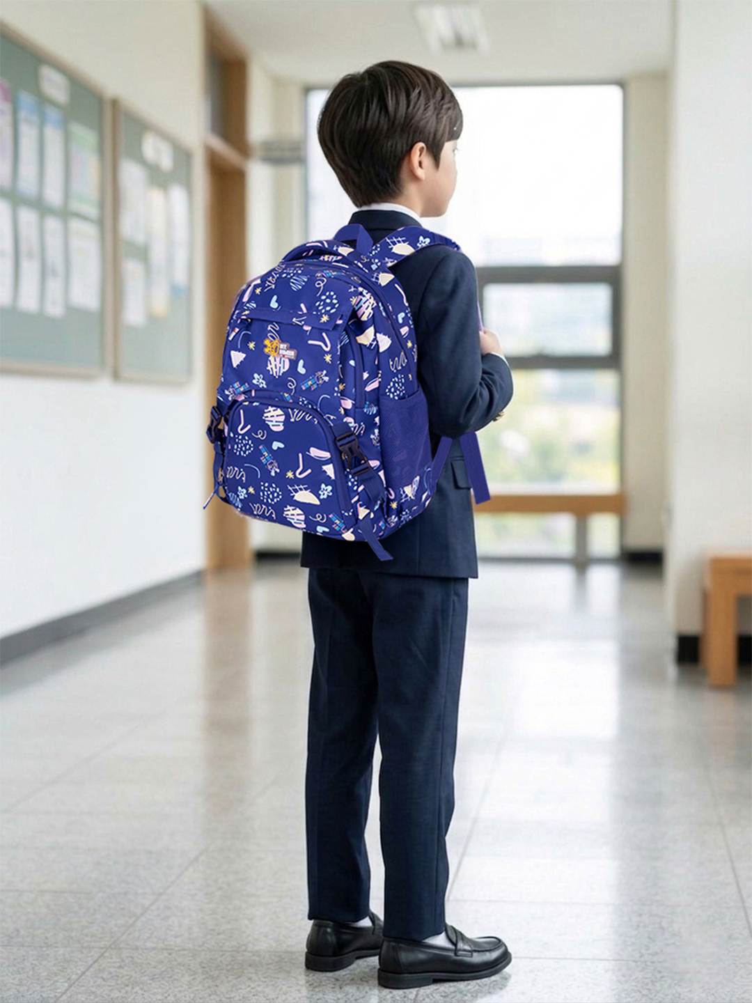 Roomy Main Compartment: 2 large compartment with plenty of space for A4 notebooks, textbooks, lunch box, water bottle, pencil case, and all essential school items – ideal for nursery, kindergarten, or primary school routines.